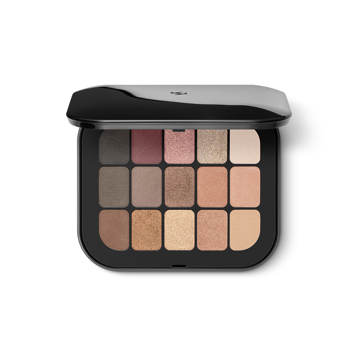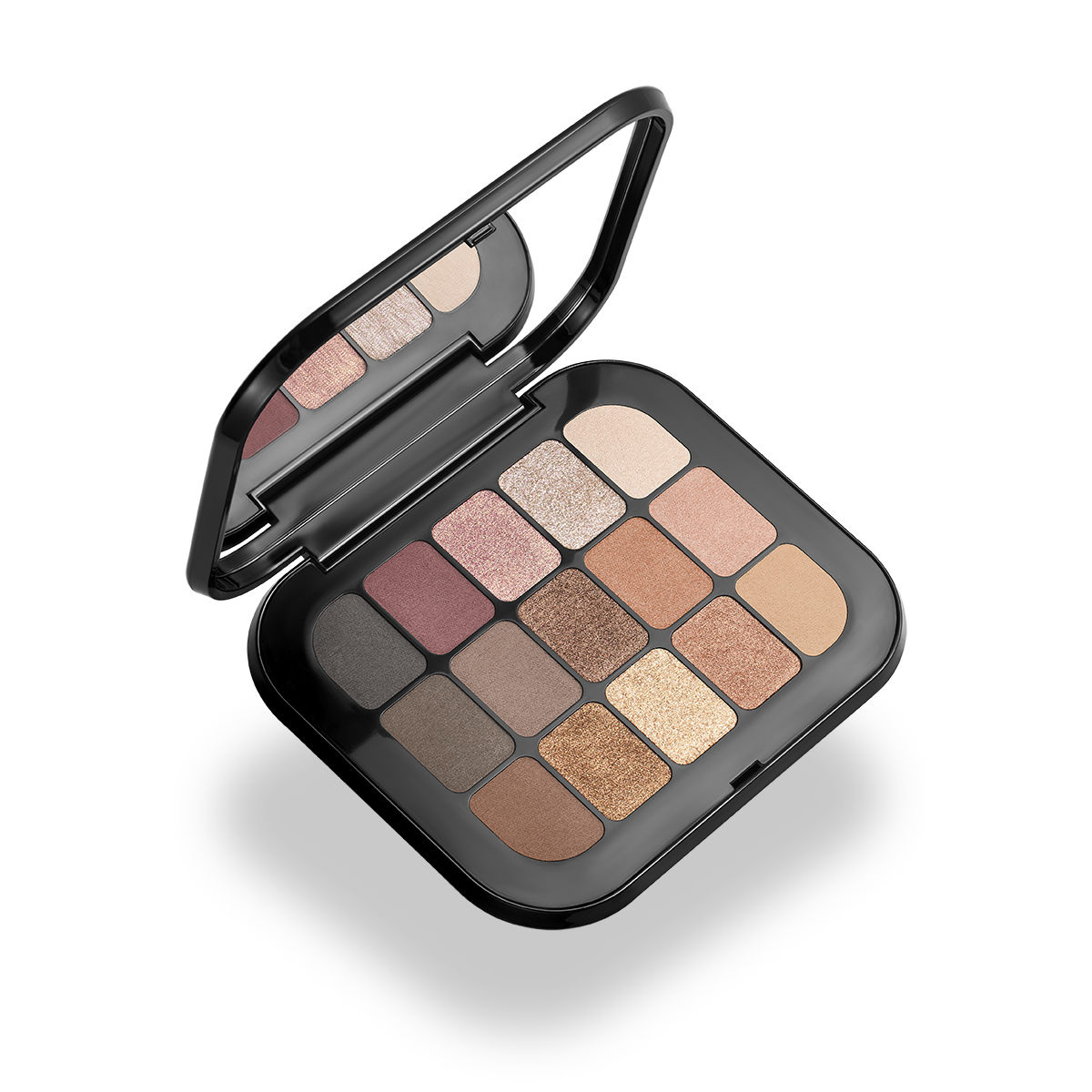Палетка с 15 матовыми и металлическими тенями для век.